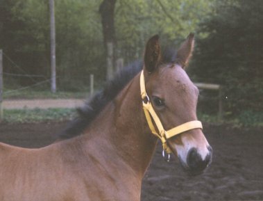 Etienne mit fünf Monaten. Er wurde an den Ehrentanz I-Züchter Ludwig Schüring zur Hengstaufzucht verkauft und zweieinhalbjährig bei der Vorauswahl zur Körung vorgestellt, er kam aber leider nicht weiter