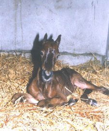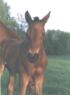 Nachdem wir mit der Anpaarung Ehrentanz I und Ramelle ein solch tolles Fohlen hatten, haben wir diese Anpaarung gleich wiederholt. Wieder war es ein Hengstfohlen, Etienne hatte von den beiden Brüdern noch mehr Chic mitbekommen, war im Wesen etwas zurückhaltender als Einstein, aber von der Qualität stand er ihm in nichts nach. Auch dieses Fohlen kam pünktlich zum Wochenende, Freitag morgens um sieben Uhr war er da. |