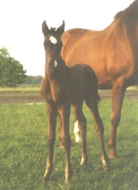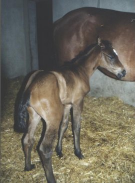 Nach drei Hengstfohlen in Folge hatte Ramelle nun wieder ein Stutfohlen und das erste, dass nach dem Wochenende zur Welt kam. Flitzi war vom Typ das bis zu diesem Zeitpunkt schönste aller unserer Fohlen, aber sie war auch die schwierigste. Ein Dickkopf sondergleichen, aber wunderschön. Ihr Name war zugleich Programm, am zweiten Tag draussen machte sie Bekanntschaft mit dem Zaun und war völlig verdutzt, daß er ihr keinen Platz machte, sie nahm ein zweites Mal Anlauf, um dem Zaun zu zeigen, wer denn wohl das Sagen hat! So erhielt sie ihren Namen! |