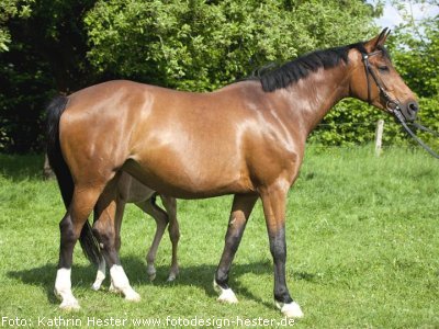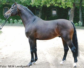 Fiona (Rufname Fanny) war ein NRW-Auktionspferd und nach einigen krankheitsbedingten Reitausfällen hat sich ihre Besitzerin Bianca Bondzio entschlossen, Fanny nun in die Zucht zu geben. Fanny kommt aus einem erfolgreichen Stutenstamm, der die gekörten Hengste Weltruf, Barbados, Lexus, Lord Surprise und Riccinos und viele Sportpferde hervorgebracht hat. Urgrossmutter Erle war Bundesschau prämiert. Nun sollte also ein Nachwuchspferd für Bianca gezüchtet werden mit gelassenem Interieur und „bedienbar“. Ein bisschen Blutzufuhr musste auch sein. Die Wahl fiel auf Laureus NRW vom westfälischen Landgestüt. Wir sind hingefahren, haben ihn uns angeschaut und dafür entschieden. Und was hat der Hengst im Laufe der letzten Zeit eine tolle Entwicklung gemacht. Da hatten wir wohl den richtigen Riecher. |